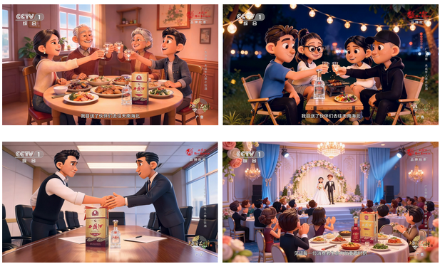 如果说故事前期的挣扎与顿悟,描绘的是品牌的故事内核与世界观,那么最后十分钟,则是一次毫无保留的价值亮剑。它干净利落地斩断了所有关于自我证明的缠绕。完成了陈酿的酒,走出酒窖,奔赴的终点并非货架,而是人生的现场。是阖家团圆的欢笑碰杯,是商务落定的诚挚敬意,是婚礼宴席上的幸福见证……